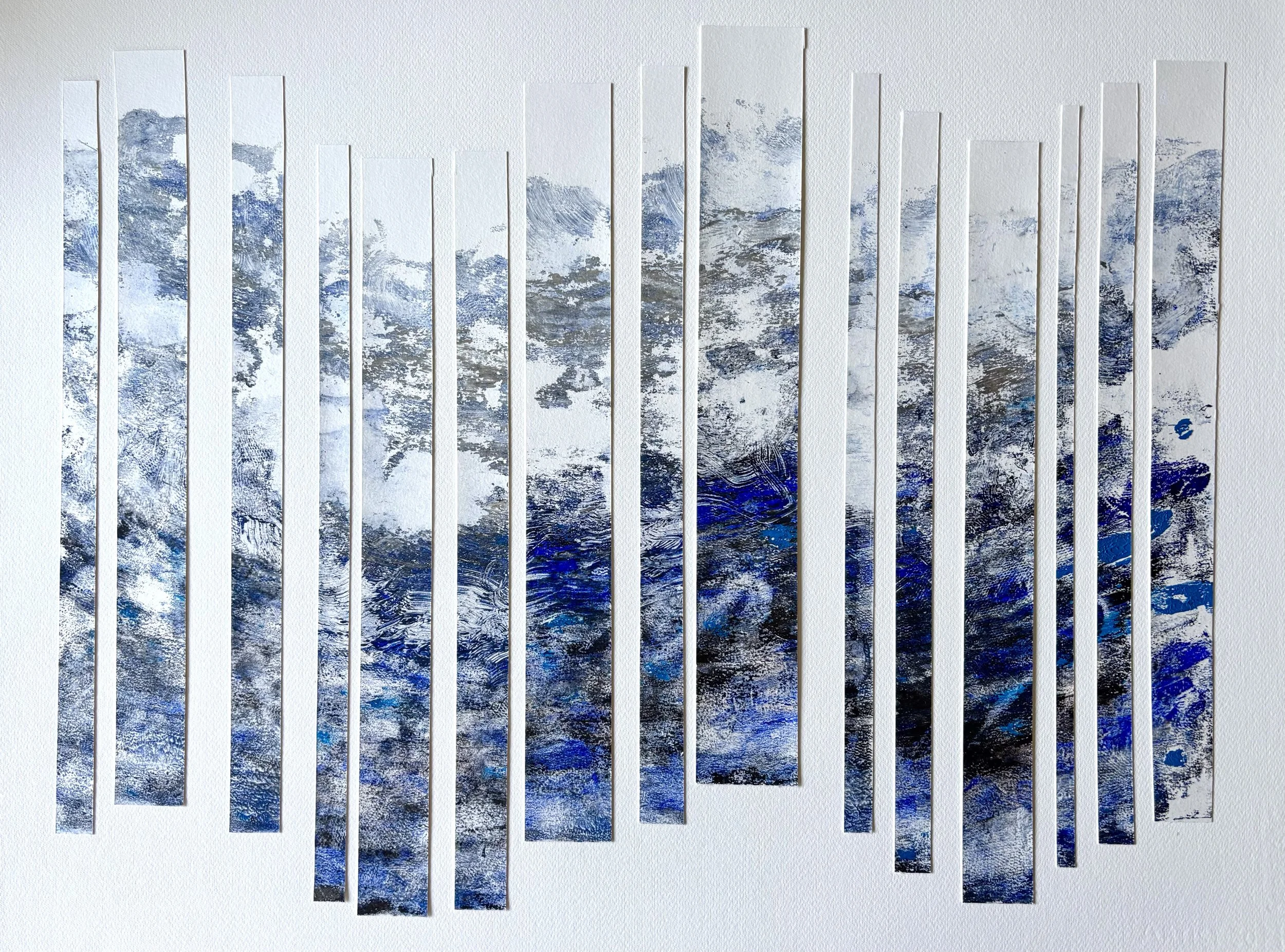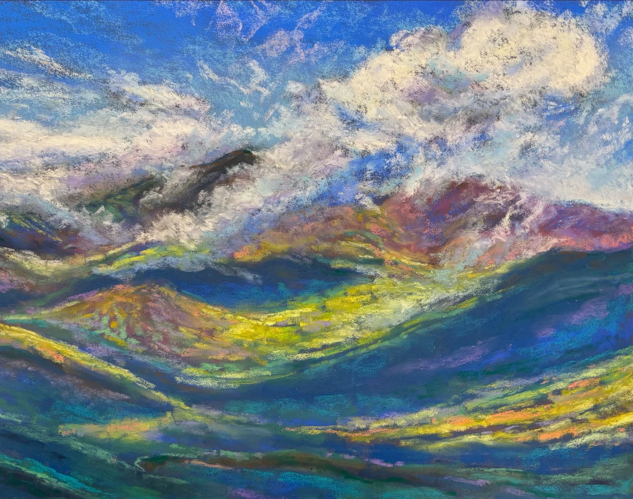 “I consider myself a translator of natural spaces. I place myself between the landscape and the viewer, capturing a small piece of the land’s existence. Sometimes as simple as a single horizon line separating land, sea, or sky. I record it within my own layers of color, line, and texture.”