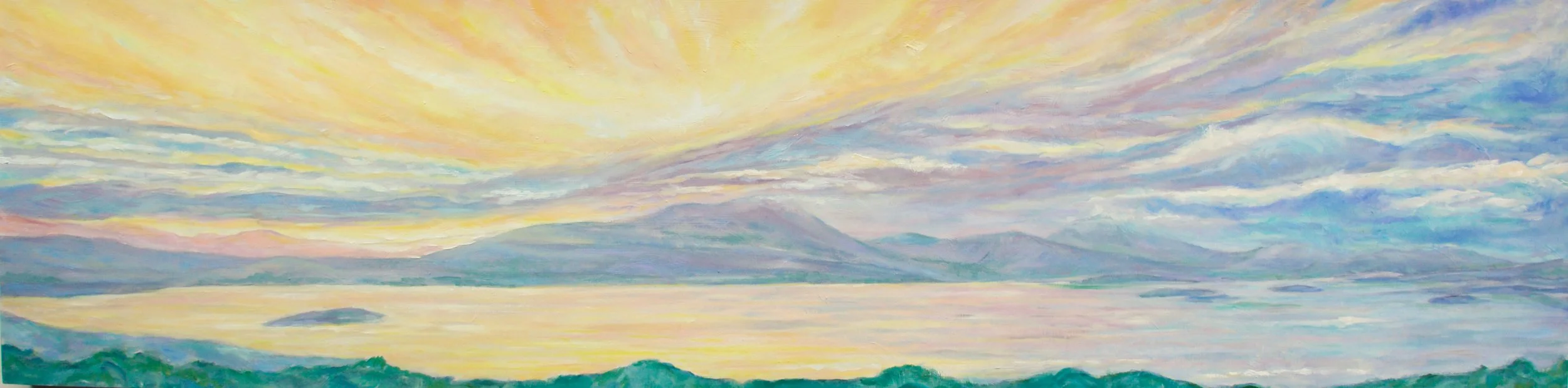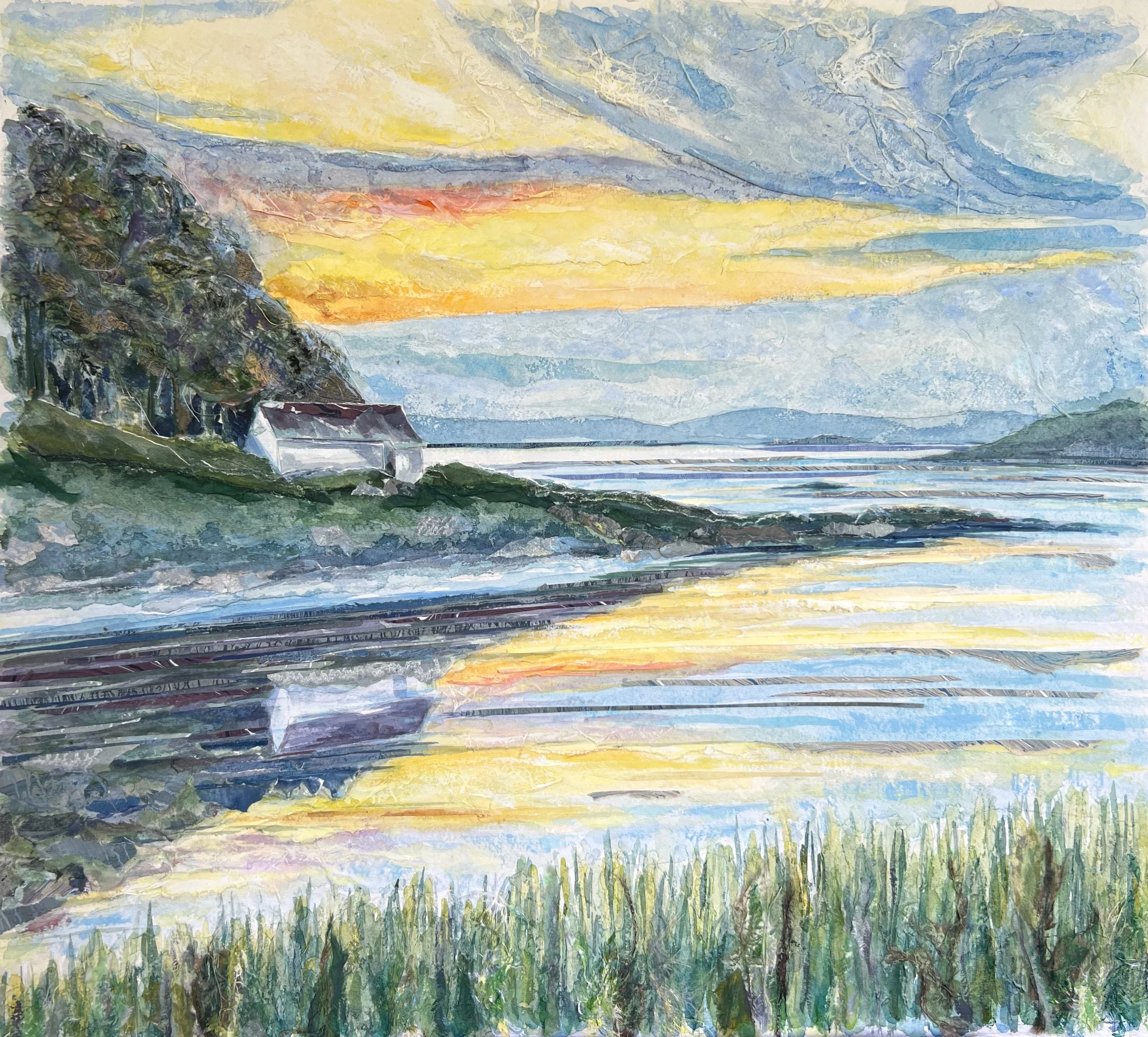 As I have lived on the shores of Lake Memphremagog for the past 25 years, this series of lakescapes is very meaningful to me. I hope that moments of our beautiful lake that some of us are lucky enough to call home will ignite a new appreciation for this rare gem of the Northeast Kingdom, bring awareness to the issues that threaten it, and action to protect it for future generations. With this, 20 percent of the proceeds from sales of original works and prints from this exhibition will be donated to D.U.M.P. – Don’t Undermine Memphremagog’s Purity and the Memphremagog Watershed Association to help support their continued work to clean up, protect, and conserve our majestic shores.